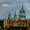 The fan corners are finished in two-tone gold leaf and the breakarch features a detailed scene of old London Bridge and St. Paul's Cathedral. |